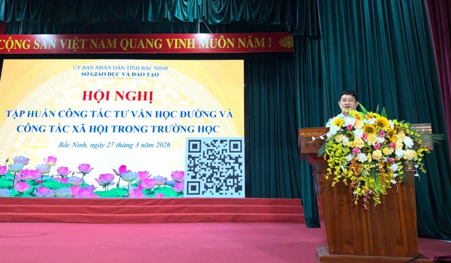 Ngày 27/3/2026, tại Hội trường Trung tâm Tư vấn và Hỗ trợ người lao động công đoàn tỉnh, Sở Giáo dục và Đào tạo (GDĐT) Bắc Ninh tổ chức Hội nghị tập huấn công tác tư vấn học đường và công tác xã hội trong trường học năm học 2025-2026.
